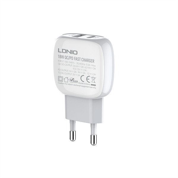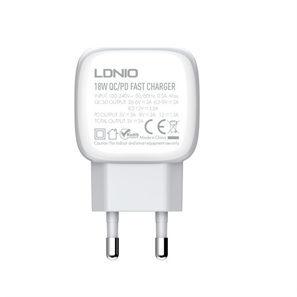 شارژر همراه LDNIO A2313C EU با قابلیت اتصال QC 3.0 PD و پورت USB-C برای آیفون، آداپتور شارژر مسافرتی برای تمام مدلهای گوشی سامسونگ و شیائومی