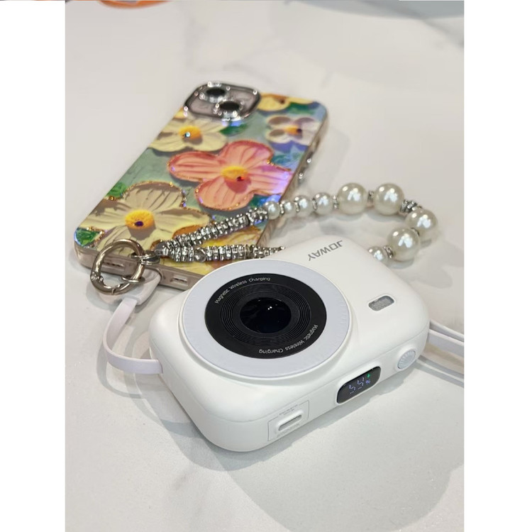 کوئیک شارژ با توان ۲۲.۵ وات ▪️پورت تایپ سی با توان ۲۲.۵ وات ▪️کابل لایتنینگ با توان ۲۰ وات ▪️وایرلس با توان ۱۵ وات ▪️دارای دو کابل در اطراف پاور بانک ( تایپ سی - لایتنینگ) ▪️دارای نشانگر دیجیتالی میزان شارژ پاور بانک ▪️دارای چیپ نوسانگیر ▪️با طراحی زیبا و نو به سبک دوربین عکاسی ▪️با قابلیت شارژ وایرلس گوشی و ایرپاد ▪️دارای وزن ۲۵۰ گرم ▪️بسیار کوچک و خوش دست ▪️دارای یک حلقه فلزی اضافه در داخل کارتن ▪️دارای تاییدیه CCCچین ▪️در سه رنگ آبی - سفید - بنفش