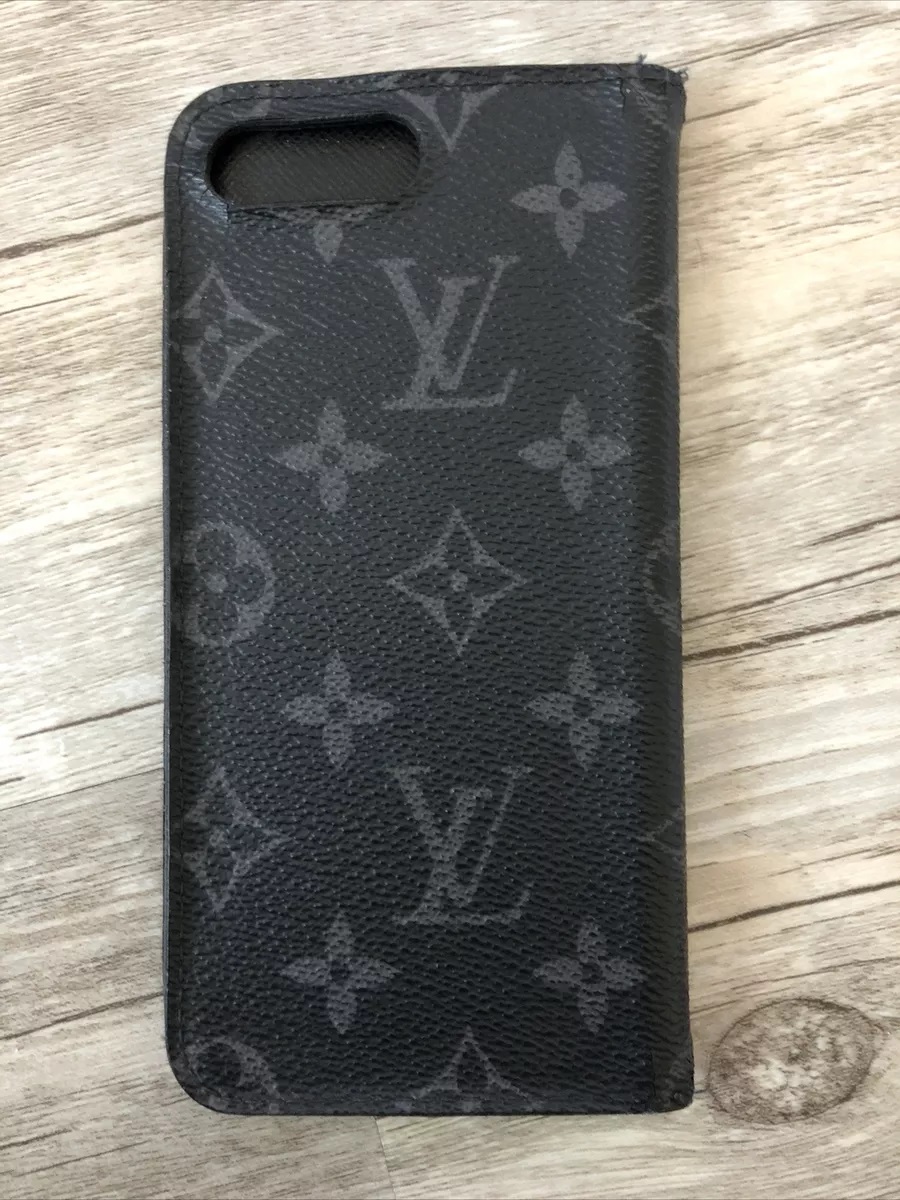 قاب تاشو چرمی لویی ویتان برای آیفون 8 پلاس | طرح لاکچری مشکی و طوسی