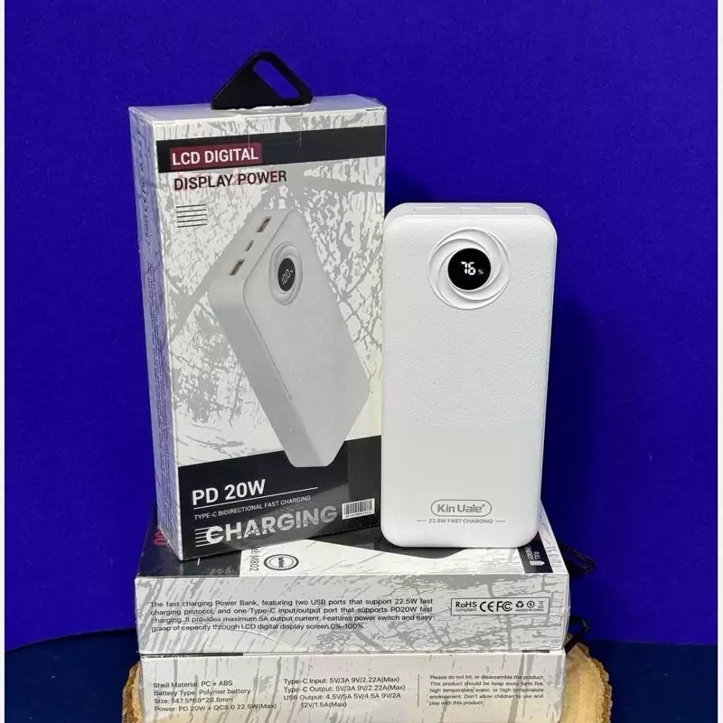 پاوربانک Kin Vale مدل M802 یکی از قدرتمندترین و کاربردیترین شارژرهای همراه موجود در بازار است که با ظرفیت واقعی 20000 میلیآمپرساعت و پشتیبانی از فناوریهای شارژ سریع PD 20W و QC 3.0 (22.5W)، تجربهای سریع و ایمن از شارژ دستگاههای شما فراهم میکند.